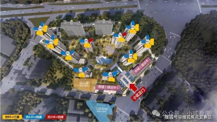 项目目前在售的是南区,一共打造了12栋32层住宅 (但11栋和12栋自持不卖,所以在售仅10栋),整体楼栋建筑围合布局,号称全部单位都朝南,实现户内全明采光。
