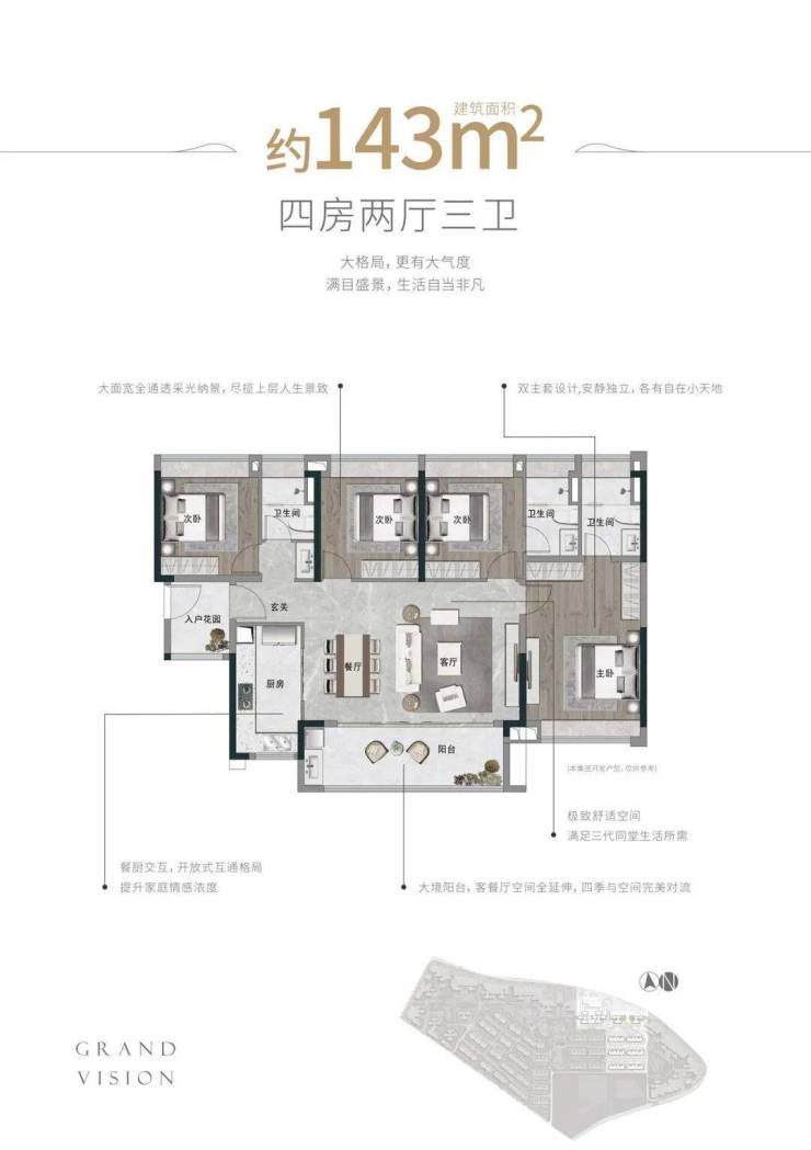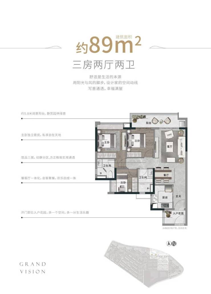 户型:建面约89㎡-168㎡阔景三至五房丨建面约159-163㎡创新叠拼