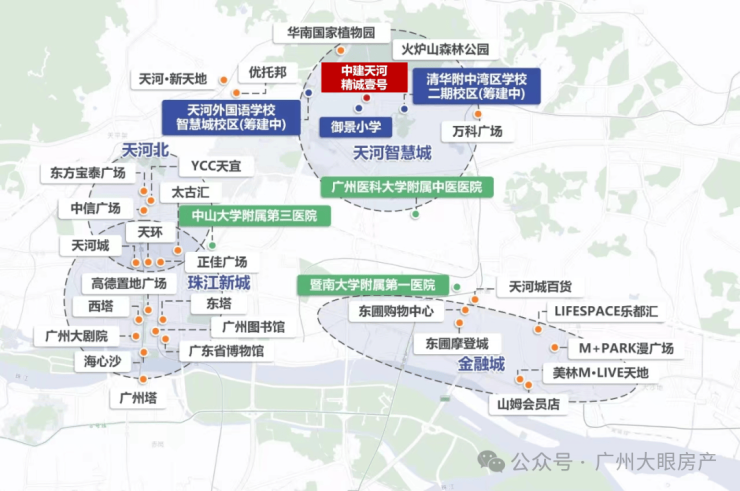 2KM 即是万科广场,15min 畅达太古汇、K11、IGC、天河城等大型商圈;20min 还可到达南方医科大学第三附属医院、广州复大肿瘤医院、广州市天河区中医医院,出门享繁华