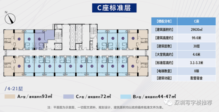 【出租】C座公寓所建面约29629㎡(单间、 一房一厅、两房一厅、三房一厅)