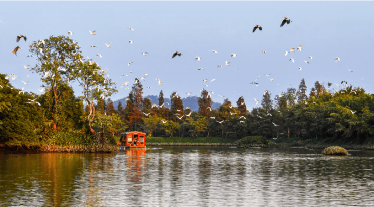 55%森林覆盖率织就绿幔,12000+负氧离子涤净呼吸。清晨漫步木栈道,看芦苇荡漾,滩涂上鹭鸟翩跹。