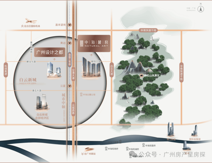 白云的发展,有着一条清晰的脉络,以三元里为起点,白云新城—设计之都—白云机场,一路沿空港大道黄金中轴北上。空港大道全长18.3公里,串联起白云新城南总部集聚区、广州设计之都,空港经济区等重点功能片区。中海麓府,位于空港大道旁,近享黄金中轴价值潜力,见证白云蝶变。