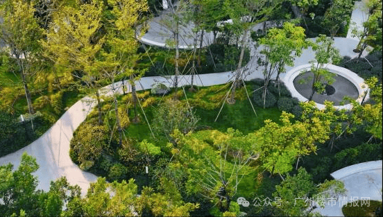 园林设计:松林秘境中心庭院:项目以岭南新中式主题园林引入云山意境,A组团设计“两环十二景”园林,提供全龄化邻里社交活动空间。