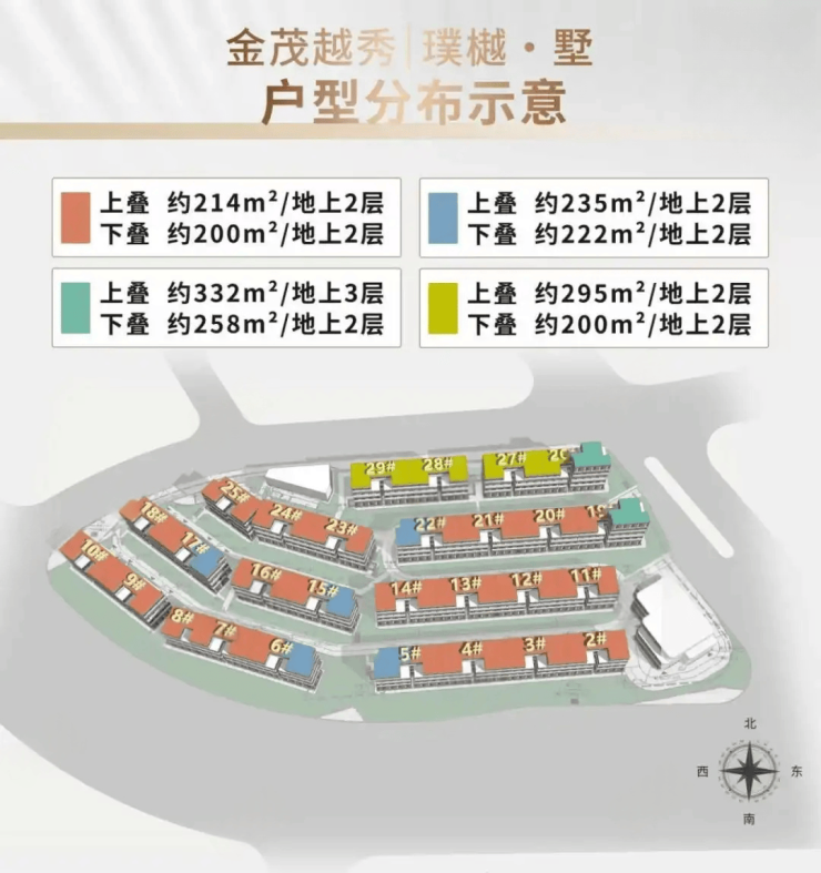 上叠214平起步,最大332平,还有少部分特殊户型