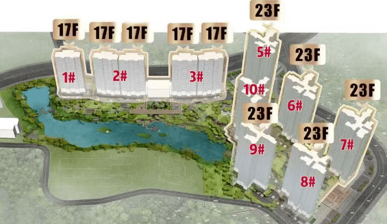 建筑限高:72 米 项目设计建设 9 栋住宅楼,约 17-23 层。