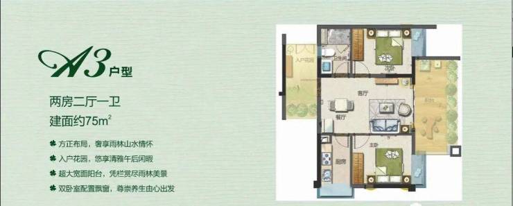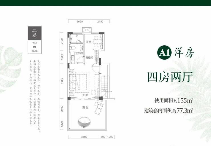 二期在售户型1:跃层洋房77.3㎡三房一厅