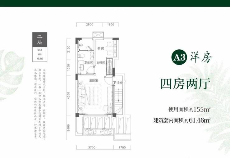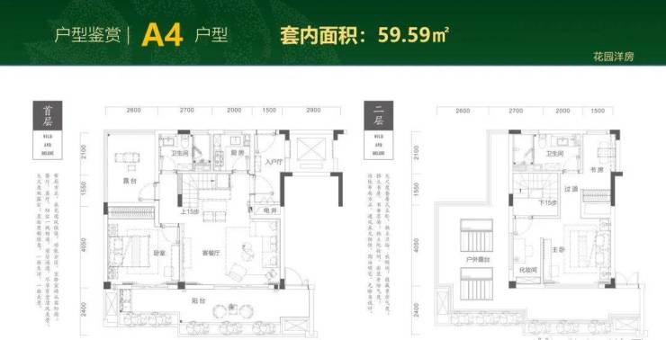 二期在售户型3:跃层洋房61.46㎡三房一厅