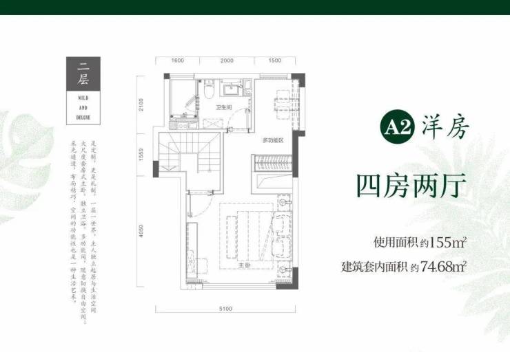 二期在售户型2:跃层洋房74.68㎡三房一厅