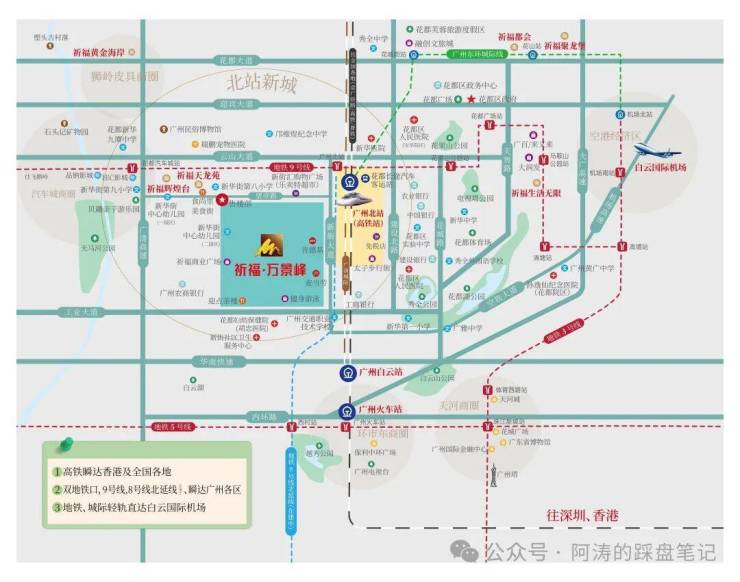 · 高铁北站:广深港高铁快速直达东莞、深圳、香港、武广高铁、各路普铁、专线畅达全国各地;未来广州北站将建成为18台36线的亚太地区大型综合交通枢纽,联通欧亚大陆!