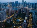 外拥百年榕树林生态屏障,内嵌1.5万㎡无界中央立体园林。130米南北景观轴×100米东西视觉通廊,以"城市山林"理念打造榕境八景。实景呈现的月洞门、云纹铺装等东方造园技法,与AI互动光影装置碰撞出未来感园居体验;
