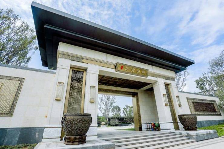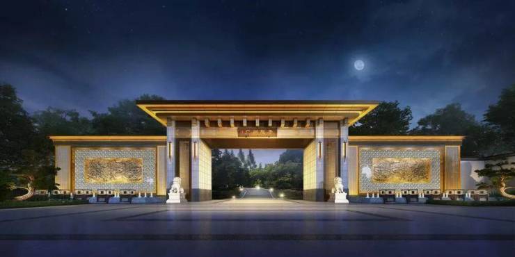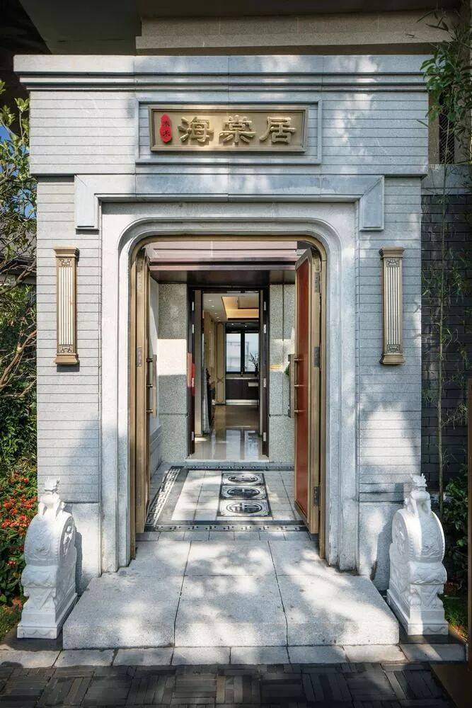 项目售楼处门口做了一个14米高的中式大门,远远的就能感受到他的雄伟气魄。 踏入院中,必须跨过四扇大门,一进见门、二进见苑、三进见院、四进见园,每一扇门背后都自成一方天地,洞见大家之仪