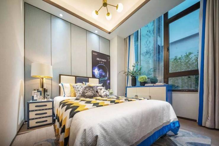 约4.95米开间的超大主人房,配备独立洗手间与步入式的衣帽间
