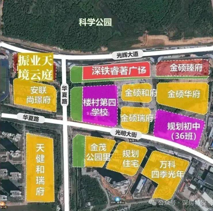 ——南侧:学校地块(深圳外国语光明学校集团下的楼村第四学校[暂定名])和住宅金硕和府