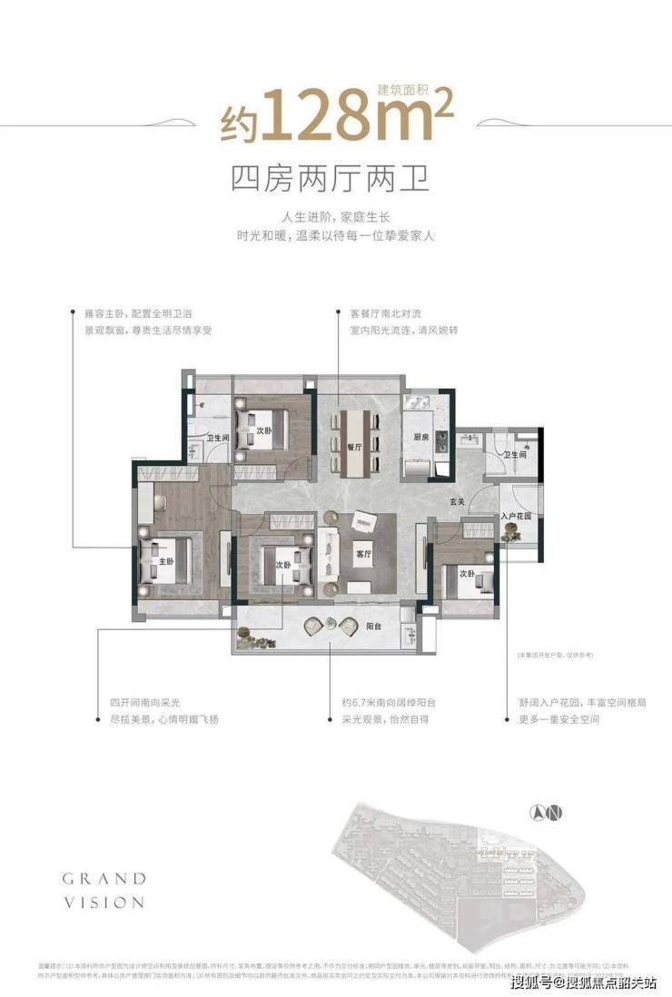 悦辰壹号户型设计覆盖多样家庭需求。主要户型包括金牌上车三房89㎡、舒适阳光三房107㎡及奢阔进阶大四房128㎡。三房户型布局合理,客餐厅一体,主卧独立套房,南向阔景阳台设计确保采光及通风;107㎡户型大面宽阳台设计,主卧带大飘窗,客厅宽敞明亮;128㎡四房户型南北通透,四开间南向采光,附入户花园及独立收纳空间,兼顾舒适与私密。