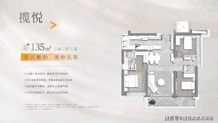 3栋(45F):3T3,135㎡(售罄)、178㎡