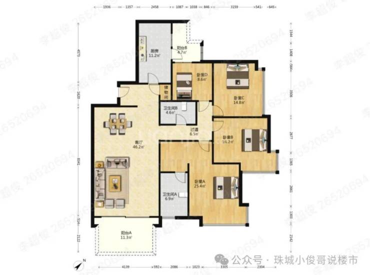 这套户型是广粤尊府的经典大四房格局,空间尺度堪称“改善天花板”——净高3️⃣米3️⃣,客厅连通观景阳台,采光面拉满的同时,将琶洲电商板块的景观尽收眼底;四个卧室分区明确,主卧套间配备独立卫浴与步入式衣帽间,既保证了主人的私密感,也为家庭生活预留了充足的收纳空间。无论是三口之家的温馨日常,还是三代同堂的天伦之乐,这个空间都能完美承载。