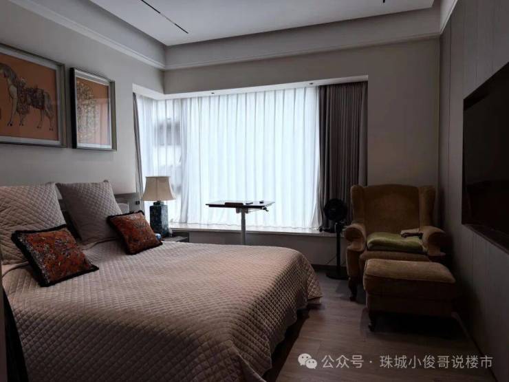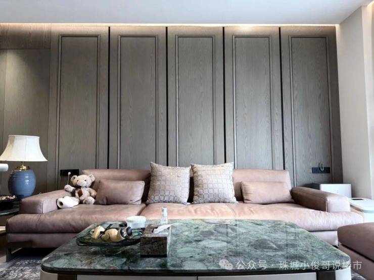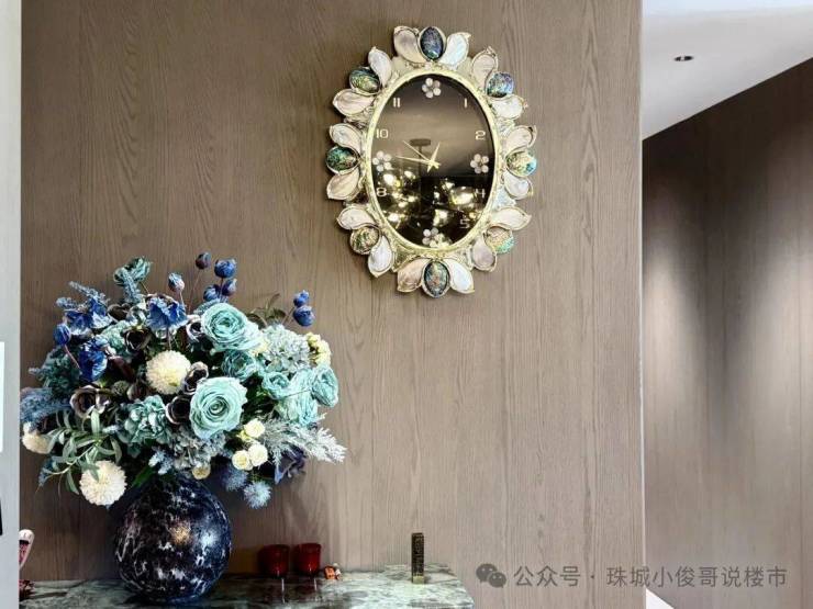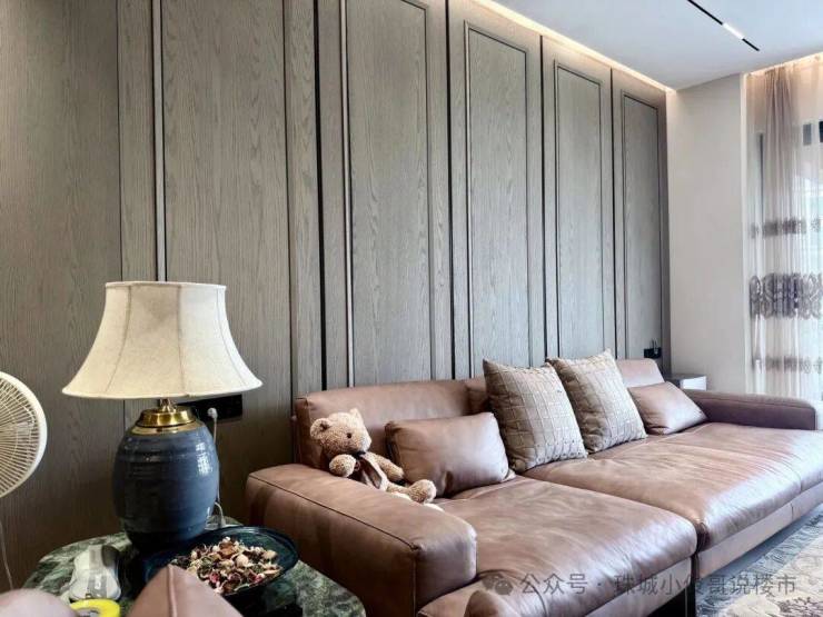 最让人惊喜的,是业主两年前斥资200万打造的轻奢风装修。不同于市面上“过度设计”的样板间,这里的轻奢是克制的、有温度的:浅灰色大理石地面搭配木饰面背景墙,金属线条点缀其间,既显质感又不张扬;厨房全套嵌入式家电崭新如初,卫浴间的五金件没有一丝水渍,就连沙发、窗帘等软装,也保持着近乎全新的状态。业主笑着说“仅住了一年,平时很爱惜”,但亲眼所见才知道,“居住痕迹少”绝非夸张,几乎可以拎包即住,省去了二次装修的耗时与成本。