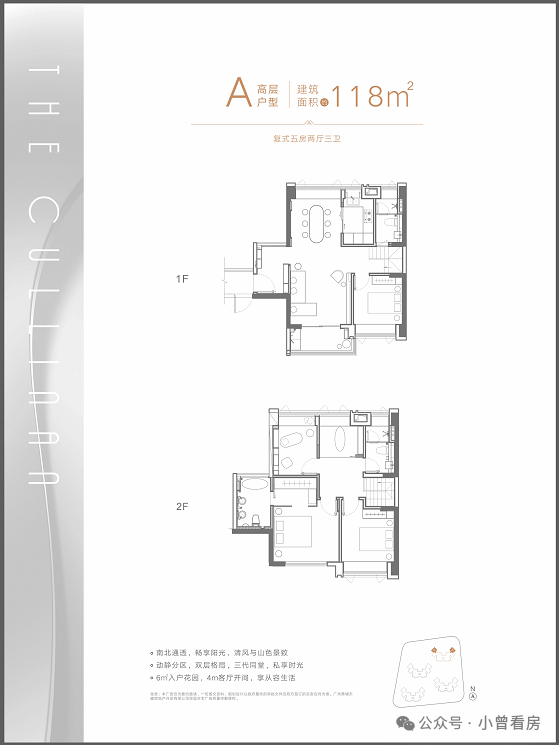 A户型:建面约118㎡复式五房两厅三卫