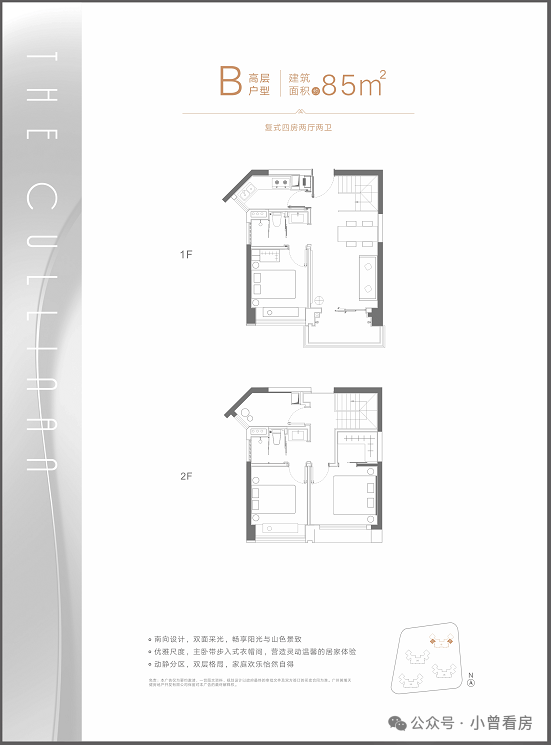 总建筑面积约10.6万㎡,设有4栋高层复式洋房,建面为85-120㎡,采用错式排布,全南向设计,通风采光俱佳,带精装交楼。