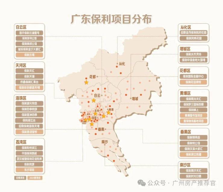 目前广东保利在广州在售项目共计31个,分布在广州11个区,2024年将有7个全新项目上市。