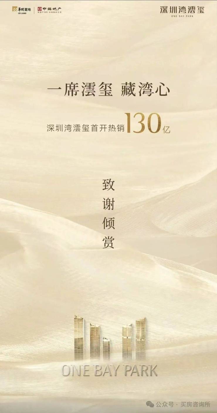 在今年的11月深圳湾澐玺率先登场,项目单价14-35万/㎡,总价3000万起步,项目开盘当天的成绩却十分惊人,当日收金130亿,刷新2025年全国开盘纪录。
