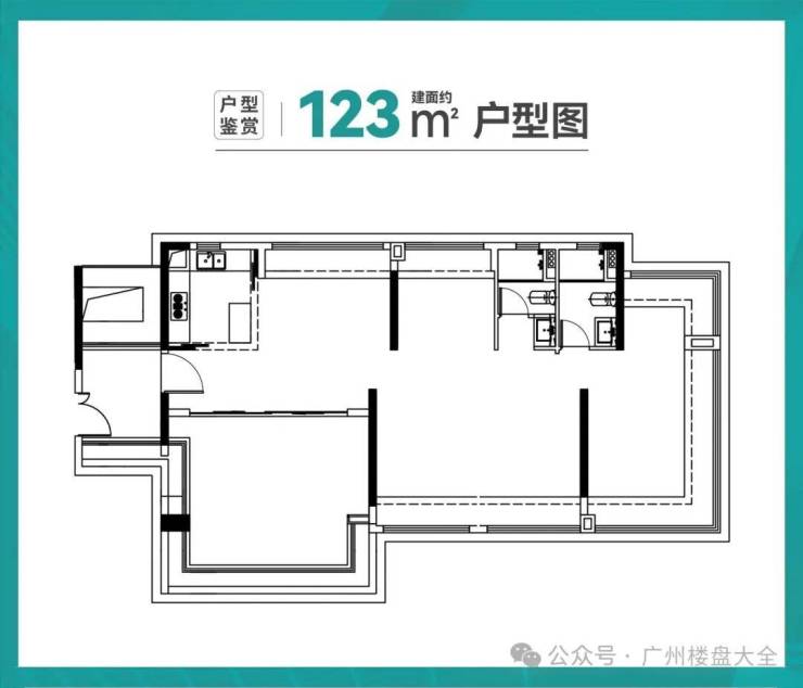 123㎡的四房,尺度更大,餐客连厅,外接南向景观阳台,很通透,超大面宽。