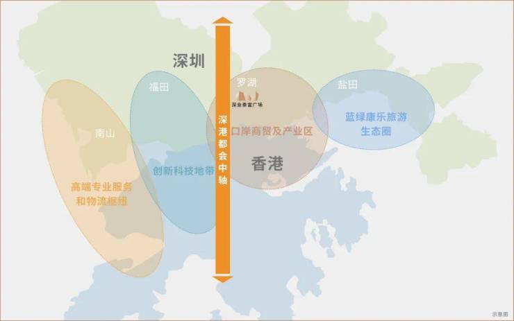 ⑤深港轴心 百万金融+商务集群深业泰富广场总建面约100万m²,共分三期开发,是涵盖办公、商业、公寓、酒店等多元业态的产城综合体。基于红岭新兴金融中轴深厚的产业优势,项目以金融+产业为核心,以产城空间为载体,打造百万金融+商务集群,全方位助力罗湖城市发展。