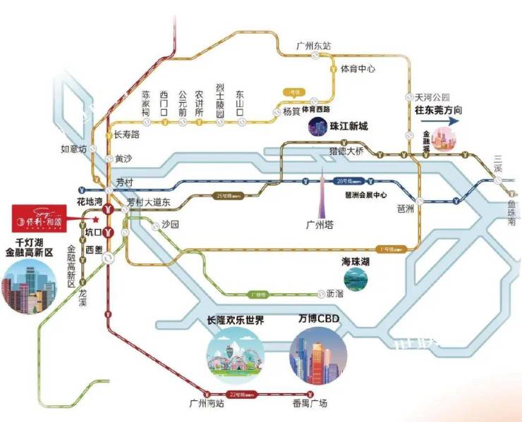地铁:约几百米1号线坑口站,直达越秀天河。1站接驳双Tod未来周边7地铁交汇,通达全城。