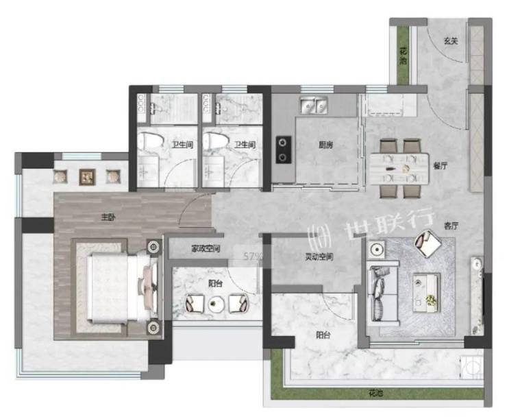 • 约30㎡主套,享宽裕衣帽/育儿间
