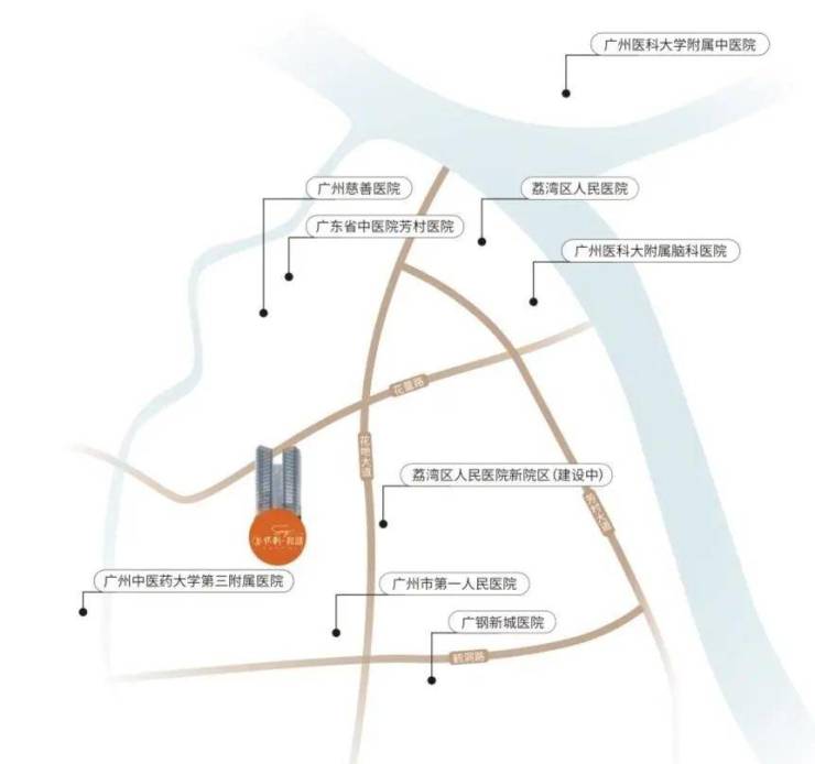 直线约600米荔湾人民医院新院区(现合并为荔湾中心医院),直线约3公里内覆盖6所三甲医院,为您和家人健康保驾护航。