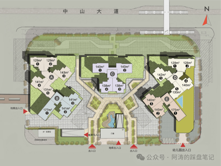 梯户比:BE 栋 2T3、AD 栋 2T5、C 栋 2T4
