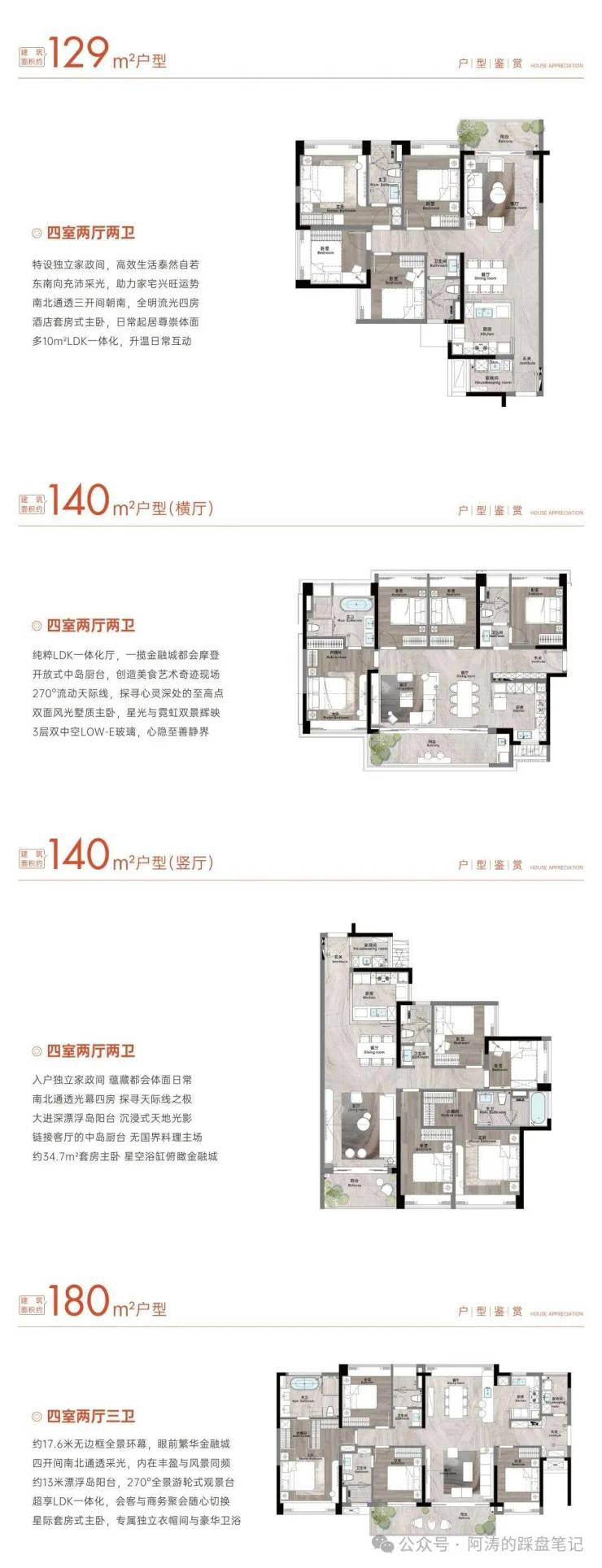 在售户型:129-180㎡四房(含 140㎡横 / 竖厅)