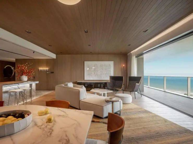 整个餐客厅以“不规则”、“自由”的开放式风格,呼应海岛的无拘无束,并点缀温润木饰面、亚麻布艺等海岛特色,为旅居者营造随心随性的居住体验。