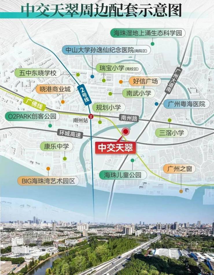 交通:项目直线距离2号线和广佛线交汇站南洲站仅约400米(数据来源:百度地图测距),虽然中间隔了一条水道,但未来规划有桥。