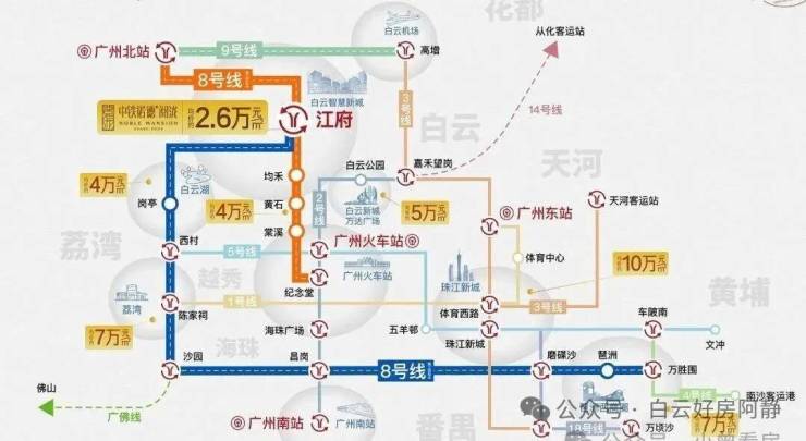 家楼下就是双地铁8号线北延段/北延段支线【江府站】,目前工程进度2%,未来坐地铁6站珠江新城CBD,10站北京路商圈、直达广州市政府,每年达50-100万人流量。