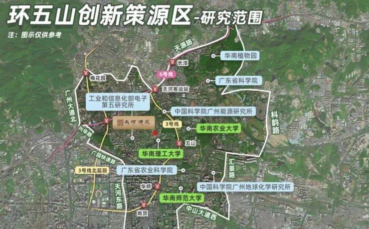 产业与学术:环五山聚焦人工智能、数字经济,片区聚集华工、华农、暨大、华师4所双一流高校,71栋纳税过亿楼宇(占全市59%),学术氛围与产业浓度双高。