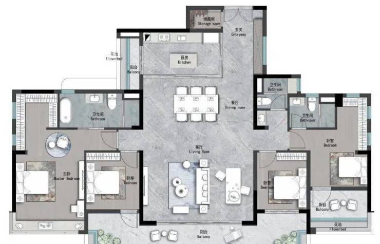 👇建面约125m² | 4空间二厅二卫