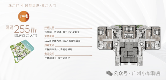 户型:建面约233-285㎡四至五房,东向/东南向一线望江,极致3.4-3.6m层高