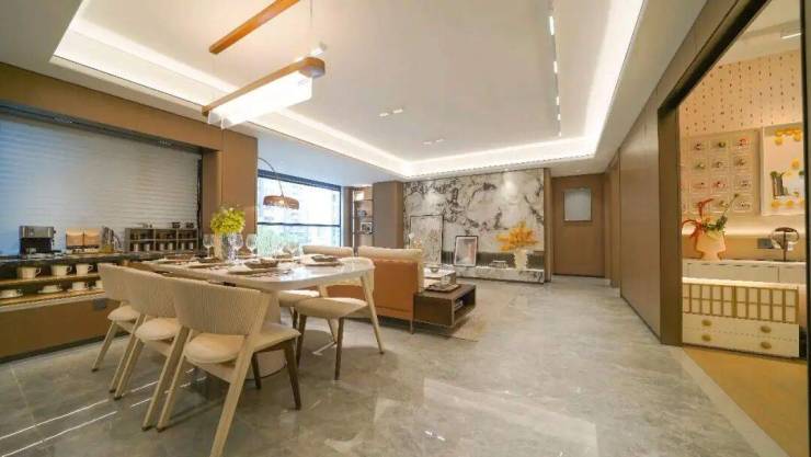 譬如这个约126平的户型能做到4房3卫2厅+1空间,得房率不输新规房。