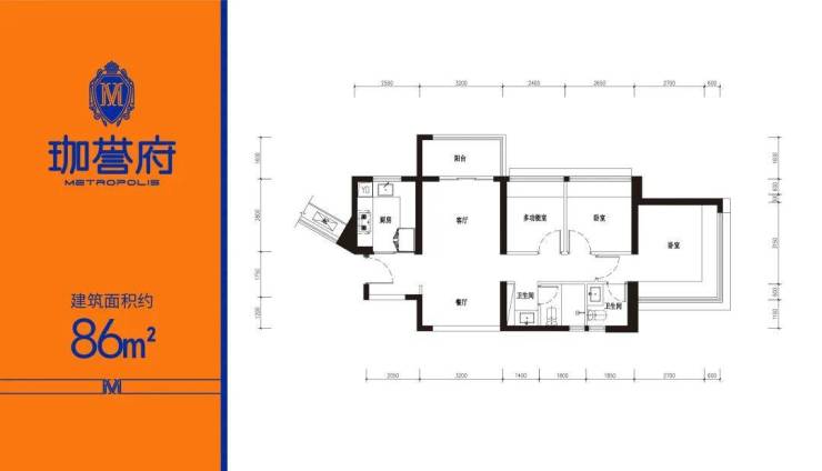 :竖厅格局 + LDKB 一体化设计,客厅 3.1 米开间,3 个卧室宽度分别为 2.9/2.8/2.25 米,U 型厨房操作便捷,1.6 米进深阳台采光充足,东南朝向享清晨暖阳,刚需首选性价比之王。