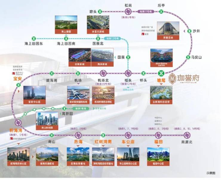 项目最大亮点之一便是 “零距离” 地铁 —— 直连 11 号线塘尾站,6 站到宝中、7 站到前海、9 站到后海、11 站到车公庙,无论是通勤南山、福田,还是往返核心商圈,都高效省时。更值得期待的是,片区中远期还有规划线路 30 号线横穿而过,未来交通路网将进一步升级,出行选择更丰富。