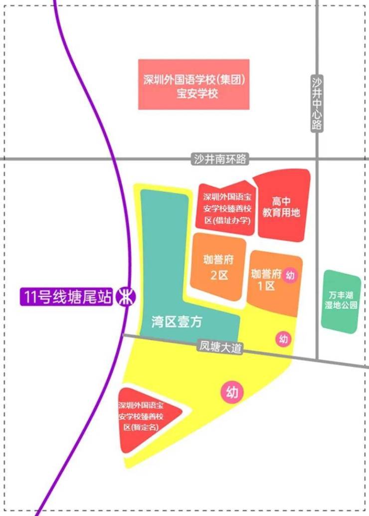 根据宝安区教育局 2024 年学区划分,项目已划入深圳外国语学校(集团)宝安学校学区,优质教育资源触手可及。更贴心的是,项目北区 04-09 地块和南区 12-01 地块将新建深圳外国语学校宝安学校(集团)南校区,未来业主孩子大概率能实现 “目送式上学”,免去接送奔波,成长路上多一份安心。