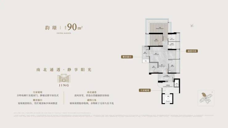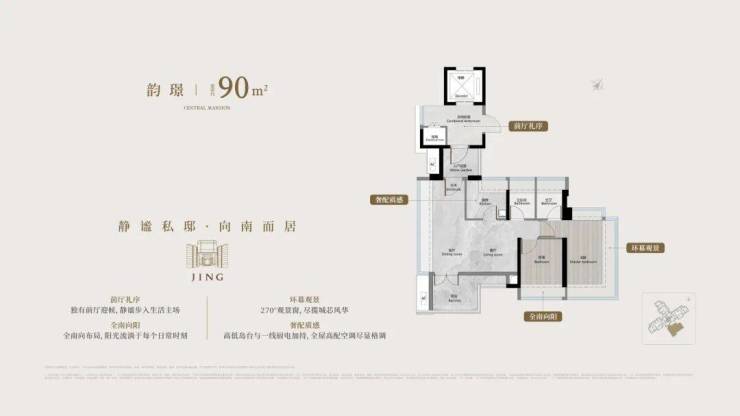 建面约90-135㎡全南向板式住区【户型鉴赏】• 建面约90㎡ 「广州唯一」专梯专户塔楼户型,私享灵活空间