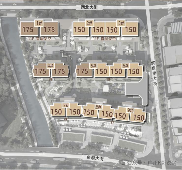 产品:8-11层板式洋房,150-175平,顶层200-300㎡复式