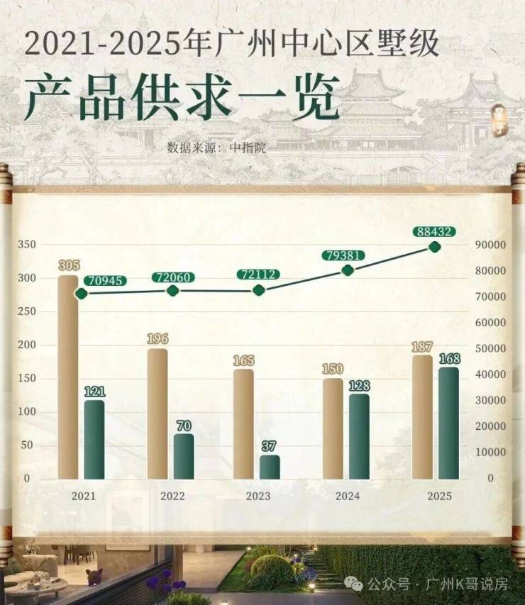 说出来你可能不信,近5年,广州墅类产品供应只有524套,成交量却冲到1003套。