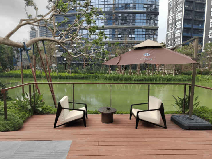 一线湖景:项目是天河东目前少有的低密度、低门槛湖景盘了,南侧有1.1万方映辰湖+600方绿地,距离不远处还有世界大观的月亮湖太阳湖。目前已经呈现出来了一部分景观,饭后在这里散步、遛娃还是非常惬意的。