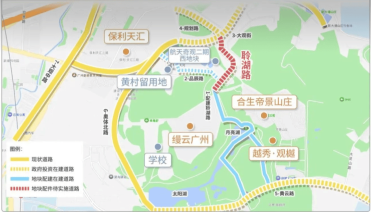 蹭豪宅配套:另外,由于项目离周边保利天汇、缦云广州、越秀观樾等几个豪宅都不远,加上项目旁边的聆湖路开通之后,往南还可以直接连通世界大观,相当于用相对低的总价享受豪宅配套。