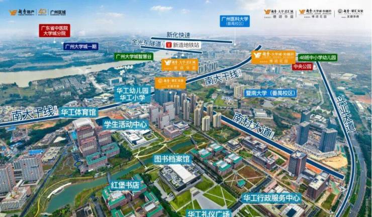 高等学府:项目毗邻华工暨大等高等学府,周边 12 所高校环绕,约 25 万师生聚集于此,学术氛围浓厚,有利于孩子从小受到熏陶