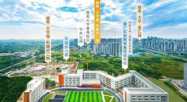 越秀大学星汇城由国企越秀地产打造,是番禺国际创新城刚需标杆盘,核心优势集中在广附名校教育、超高实用率、便捷通勤与全维配套,精准适配刚需及刚改家庭。项目配建9班幼儿园,对口公办广附九年一贯制学校,已正式开学,提供校车接送,实现12年教育闭环,教育确定性拉满。