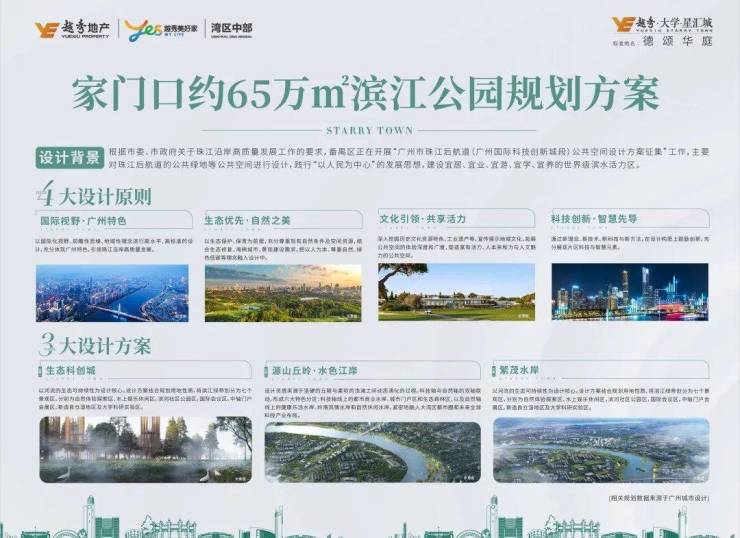 滨江公园:项目北面约 600 米规划有约 65 万㎡滨江公园,面积比珠城的花城广场还要大,是居民休闲娱乐的好去处